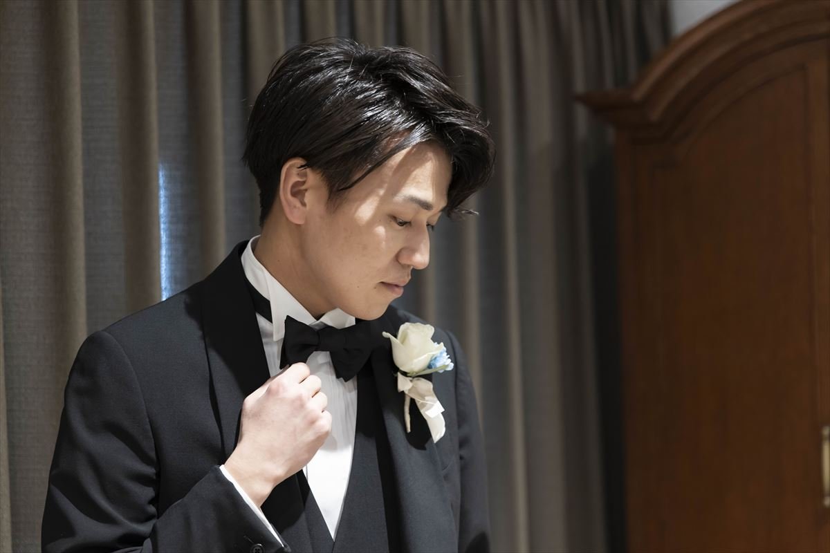 おふたりの一日はファーストミートからスタート。りささんがお召しになるウェディングドレスは、げんきさんにはこの瞬間まで内緒でした。ようやく、りささんの晴れ姿を見ることができ、感動のご対面となりました。