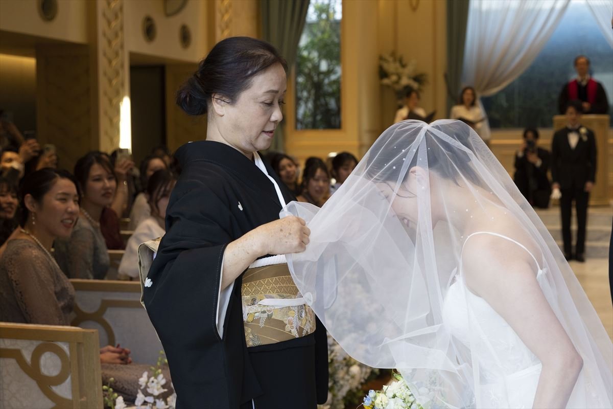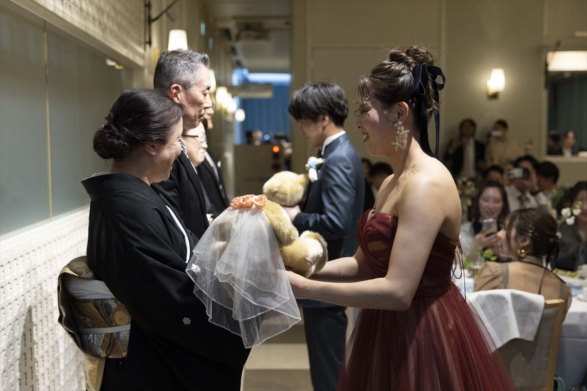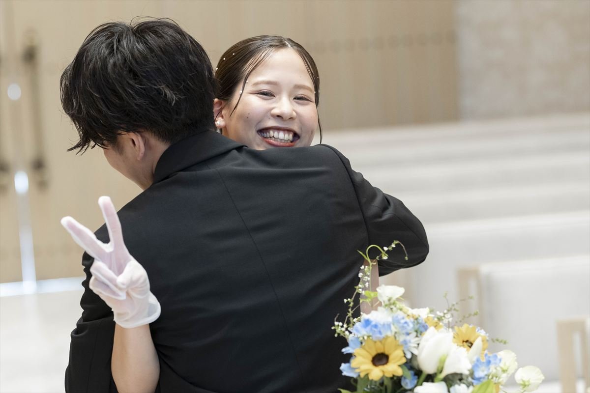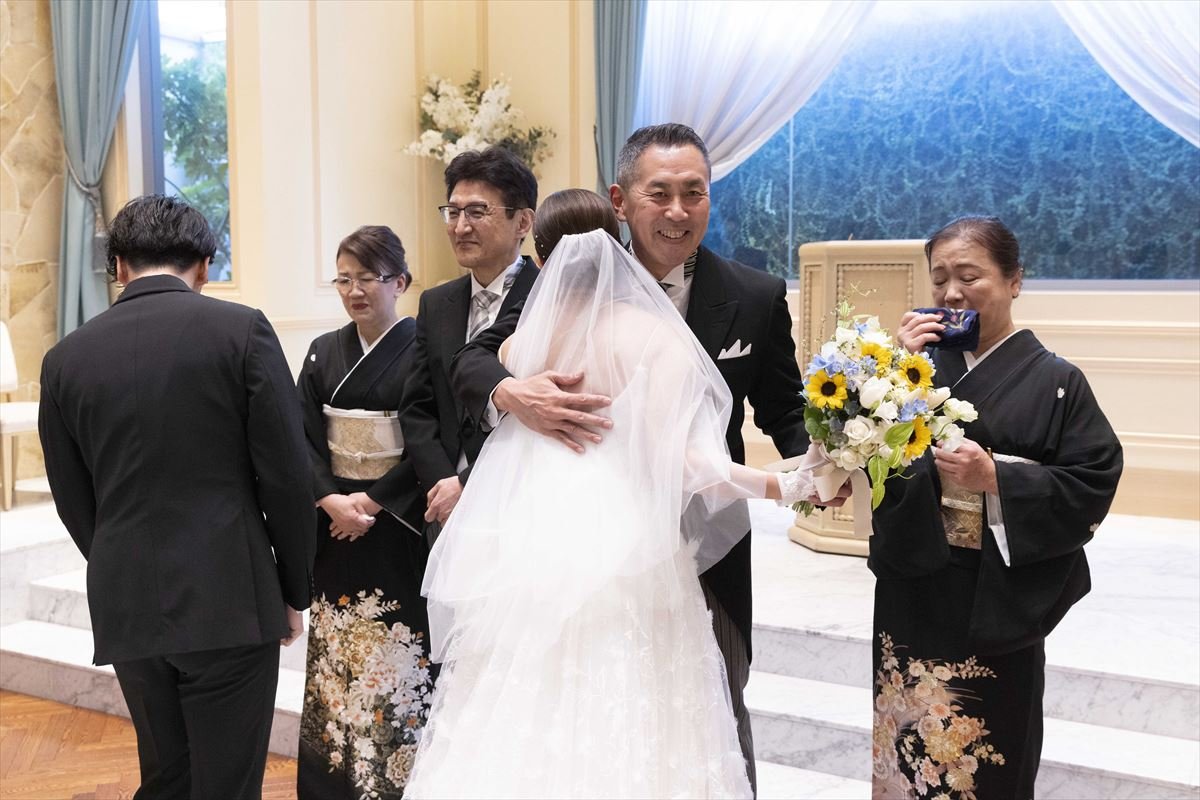 続いては、たいせつなご家族におふたりの晴れ姿をお披露目するお時間です。親御様からの温かいハグで包まれ、おふたりからもしっかりと親御様に感謝を伝えていただきました。