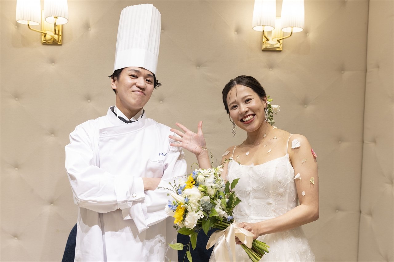 当日は、感謝の想いを伝える演出を行いました。中でも新郎がフランベ演出を行い、姉の元へ料理を届けるシーンは、とても心に残っています。また、ウエディングケーキは付き合って初めて行った石川旅行でドライブ中に見た海の景色と金沢の金箔をイメージしたケーキを作ってもらいました!リメイク入場は家族3人で入場し、子どもの表情当てクイズを行って盛り上がりました。ブルーレマン名古屋で結婚式を挙げることができて、本当によかったです。これから結婚式を挙げる人たちにも、ぜひおすすめしたい式場です!