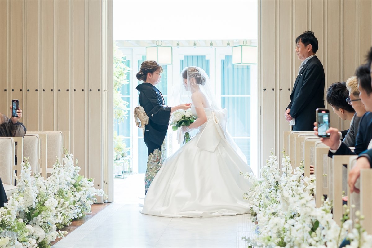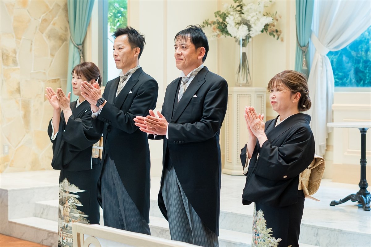 続いては、たいせつなご家族におふたりの晴れ姿をお披露目する時間です。おふたりが産まれた日から本日までのことを思い返していただきながら、温かい拍手の中おふたりをお迎えくださいました。親御様からおふたりへ、おふたりから親御様へ…想いを届けていただきました。